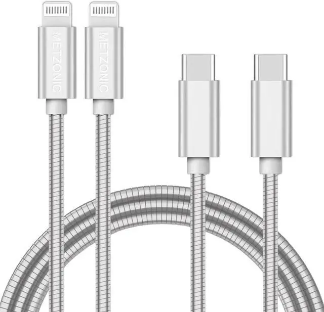 METZONIC MFi Certified Lightning Cable [2 Pack 6.6 Feet] Metal Braided Type C to Lightning Cable with Short-Circuit Resistant Insulation Coated Jacket, Fast Charging