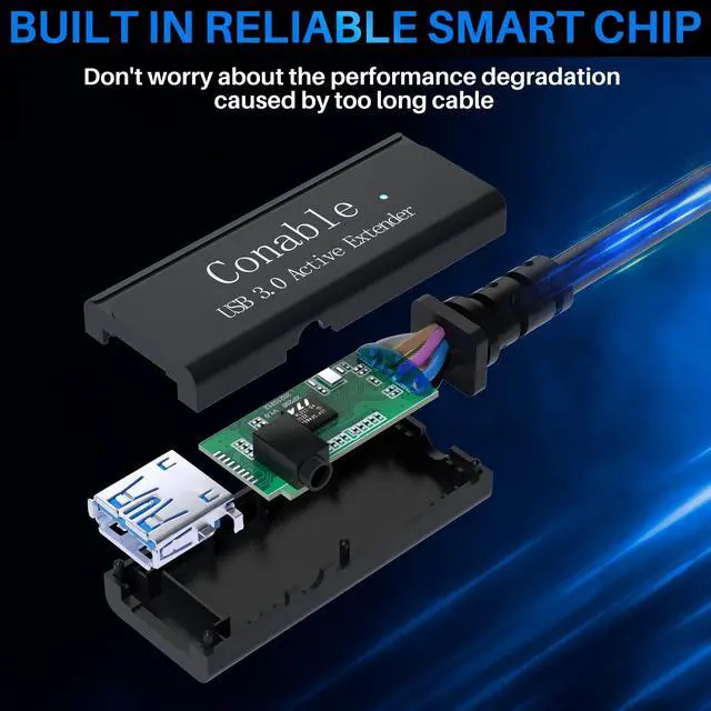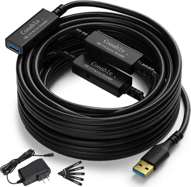5Gbps Stable Data Transfer: The maximum data transmission speed of this USB active repeater cable is up to 5Gbps, 10X faster than USB 2.0 cable. Our cable has 3 extended chipset signal amplifiers to ensure uninterrupted signal transmission and stable speed when USB devices are used on this longer cable than other USB extension cable. Each integrated amplification chipset with an extra port for optional AC power adapter (DC 5V 2A), so you can insert the one closest to the plug when you need it.