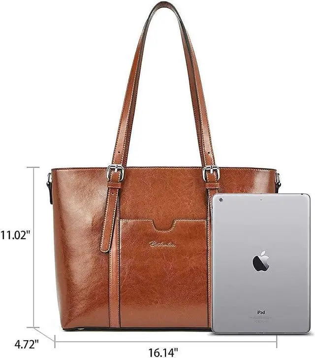 BOSTANTEN Womens Leather Laptop Tote Office Shoulder Handbag Vintage Briefcase 15.6 inch and Women Leather Wallet RFID Blocking Small Bifold Zipper Pocket Wallet Card Case Purse with ID Window