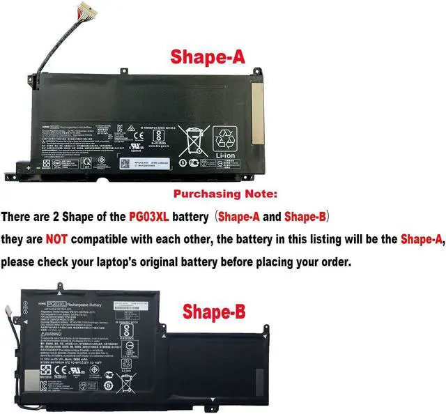 Compatible Part NumberPG03XL PGO3XL 831532-421 831532-422 831758-005 HSTNN-LB7C .(There are 2 Shape of the PG03XL batteryShape-A and Shape-B they are NOT compatible with each other, the battery in this listing will be the Shape-B, please check your laptop's original battery before placing your order.)