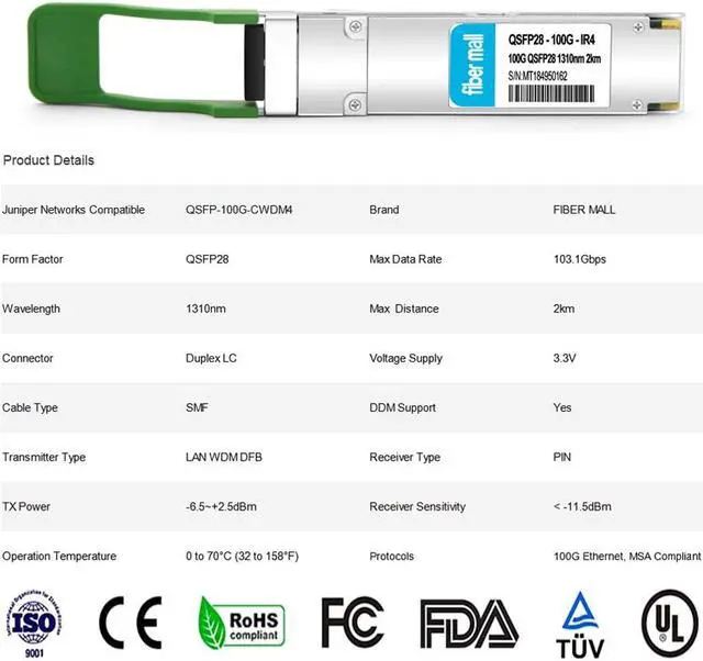 100G QSFP28Juniper Networks 100Gigabit Ethernet, coding as Juniper Networks QSFP-100G-CWDM4 , also compatible