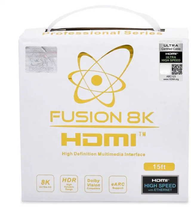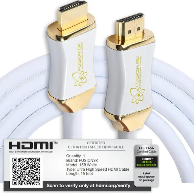 Fusion8K White HDR HDMI 2.1 Certified Cable Supports 10K 8K @60Hz and 4K @120Hz Compatible with Dolby Vision and All TVs, BluRay, Xbox Series X, PS5 (15 Feet)