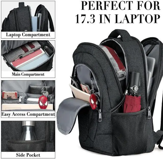 BIKROD Travel Laptop Backpack, 17 Inch Extra Large School Backpacks for Teen Boys and Girls, Black Water Resistant Women Back Pack, Business Men Sturdy Computer Bag with USB Charging Port, Gifts