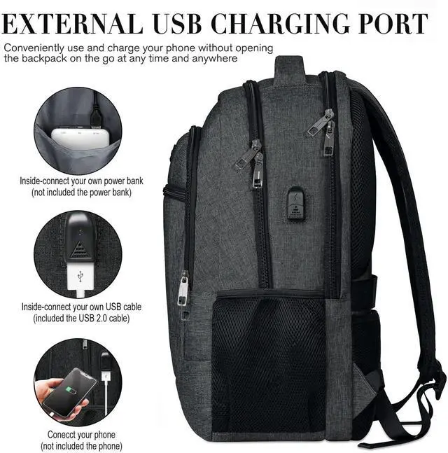 STURDY MATERIAL&SOLID: Made of Waterproof and Sturdy Polyester Fabric with metal zippers. Ensure a secure & long-lasting usage everyday & weekend. Serve you well as professional office work backpack, slim USB charging backpack, perfect as Laptop Backpack, Travel Backpack, College Bookbags School Teen Boys Backpack, mochilas para hombres. Premium gift for the family, friends, co-workers, Birthday, Christmas for Middle School, High School, College, Bachelor, Graduate, Men, Adult Trav