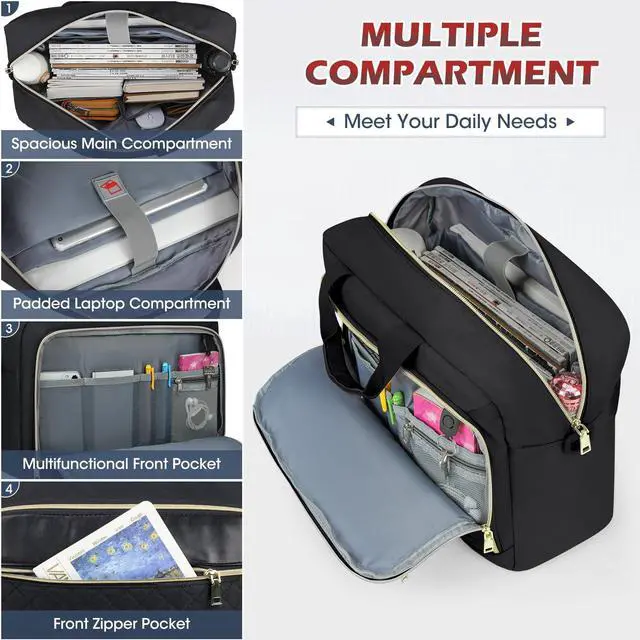 Large Capacity & Multiple Pockets3-compartment design makes this computer bag meet all your needs. Main compartment features padded laptop sleeve that holds 17.3" laptop and 12.9" iPad, 2 mes