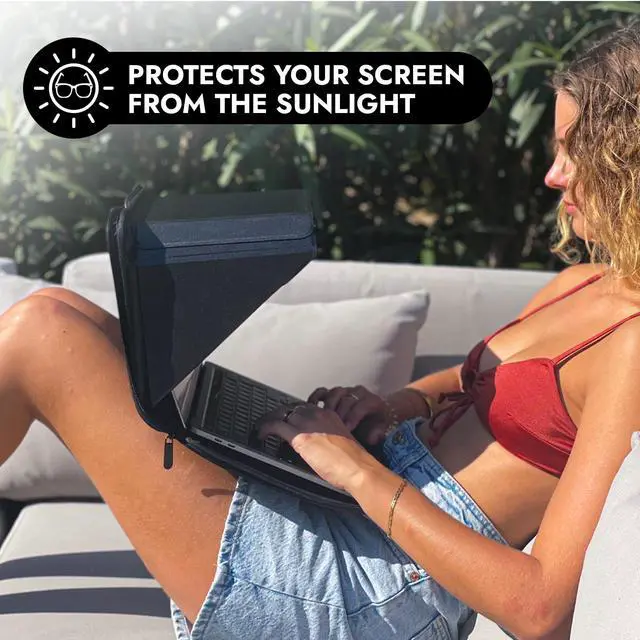 ELEVATE YOUR OUTDOOR WORKSPACE: The multi sleeve sun hood is the ultimate solution for outdoor work, reducing screen glare and reflections while you enjoy the outdoors. Whether you're a photographer, contractor, or business professional, this lightweight, portable sunshade ensures a brighter, clearer view, making outdoor work or gaming sessions more enjoyable and productive. The first Screen Shade products on the market Patent no. D790551.