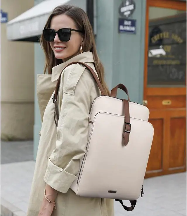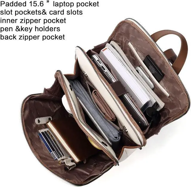 Unique Design: The laptop backpack women comes with high quality genuine leather, gun-tone hardware, buckles decoration for fashion and vintage appearance. Accordion-designed structure to ensure a large capacity. Crafted from the f