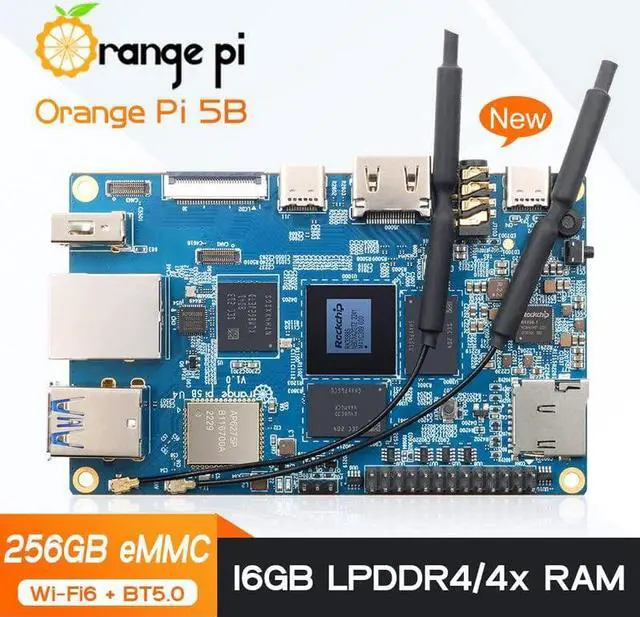 Orange Pi 5B 4GB+32GB Rockchip RK3588S 8-Core 64 Bit Single Board Computer with 32GB onboard eMMC Flash, Wi-Fi6/Bluetooth 5.0, Compatible Linux/Android/Debian/Ubuntu (16GB256GB+Power Supply)