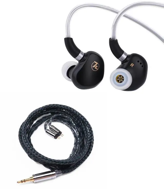 Linsoul 7HZ G1 in-Ear Monitor, 10mm DLC Diaphragm Dynamic Driver IEM Earphone (with Mic) + Tripowin Zonie IEM Cable, 16 Core Silver Plated Earphone Upgraded Cords(2pin 0.78 mm, 3.5 mm) (Moss)
