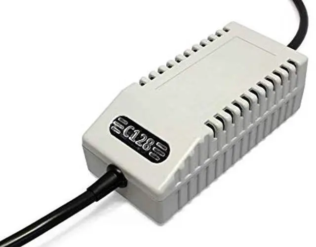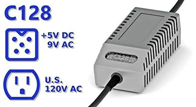 Replacement power supply for Commodore 128 Stabilized 5V/ 3.0A DC output with anti-ripple filter Transformer-generated 9V/ 1.1A AC output Over-voltage and over-current protection Fused on AC and DC side and fully isolated LED-illuminated high quality chassis Durable and thick cables on both sides Runs cold Weight only 0.6 kg ( 1.3 lb) Compact enclosure with modern shape 125 mm x 59 mm x 42 mm ( 5.0" x 2.3" x 1.6" ) Square DIN5 plug with 5V DC and 9V AC US-standard 120V AC power plug (U. S., Canada, Mexico, Japan, and others)