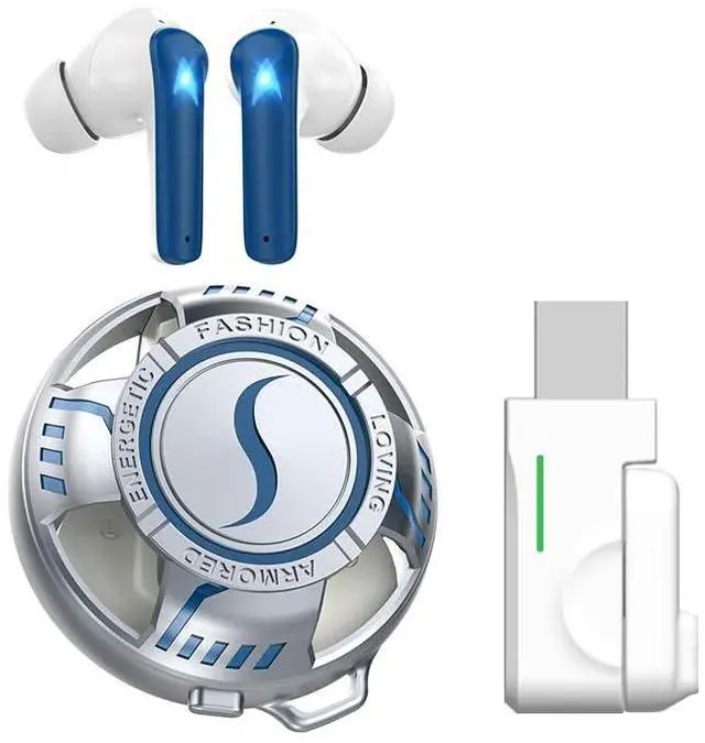 Wireless Bluetooth 5.3 Earbuds Active Noise Canceling Glow Headphones 2.4G Metal Outdoor Wireless Earbuds, 13mm Drivers for Deep Bass, 1H Fast Charging, 5H Play, Fit for Daily, Travel & Sports(Blue)