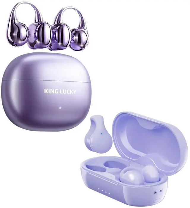 King Lucky i121 Open Ear Clip-on EarbudsKing Lucky Experience the ultimate in audio innovation with King Lucky i121 Open Ear Clip-on Earbuds. These state-of-the-art open ear wireless earbuds are designed to deliver high-quality sound while keeping you aware of your surroundings. Perfect for outdoor activities, our open ear buds wireless Bluetooth earbuds offer safety and an immersive listening experience in one sleek package. Crafted with comfort in mind, the King Lucky i121 open ear clip earbuds feature an innovative C-shaped bridge design. This ensures a secure and comfortable fit for various ear shapes, making these earbuds open ear ideal for all-day wear.