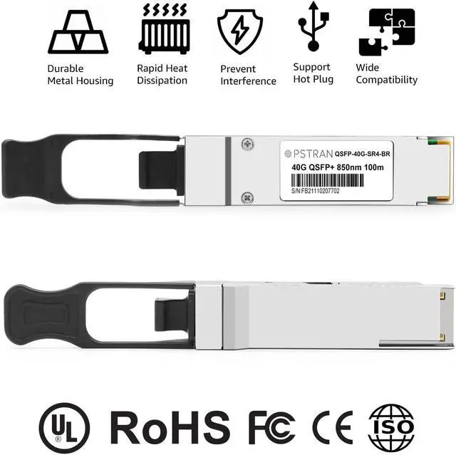 40GBASE-SR4 QSFP+ Optical Transceiver Module, Built-in high performance Chip, Max. Power Consumption 1.2W enable Prolonged Service Life, Commercial Temperature Range 0 to 70°C (32 to 158°F)