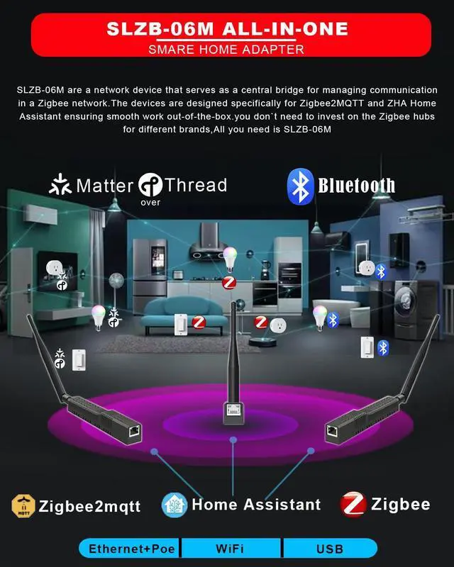 SMLIGHT SLZB-06M - Zigbee 3.0 to Ethernet,USB,and WiFi Gateway Coordinator with PoE,Universal Gateway for Home Assistant/ Zigbee2MQTT/ZHA,Wireless Zigbee 3.0 USB Adapter