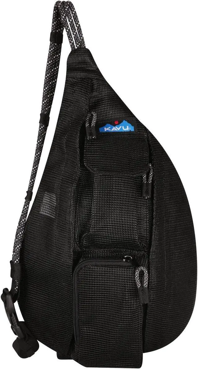 Versatile Mini Sling Pack: The KAVU Mini Beach Rope Bag Mesh Crossbody Sling Backpack combines the convenience of a sling pack with the playful charm of a mini bag. Its adjustable rope shoulder strap and side release buckle allow for easy customization and a comfortable fit, making it perfect for any adventure or activity.