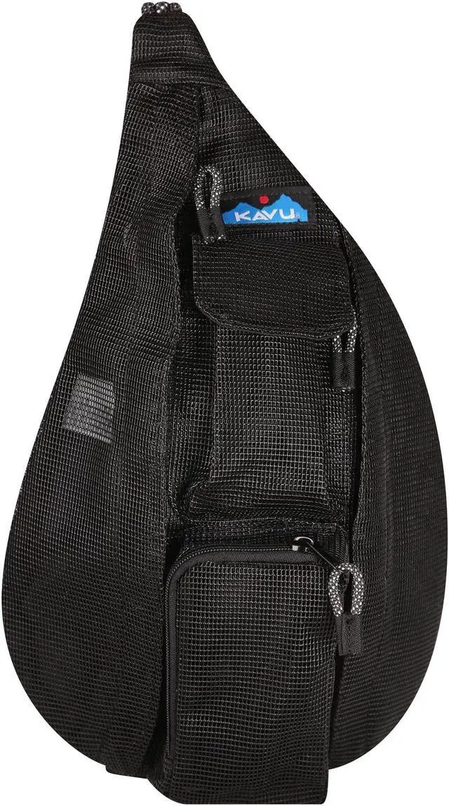 KAVU Mini Beach Rope Bag Mesh Crossbody Sling Backpack - Black