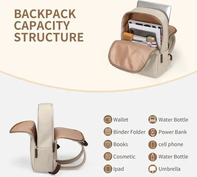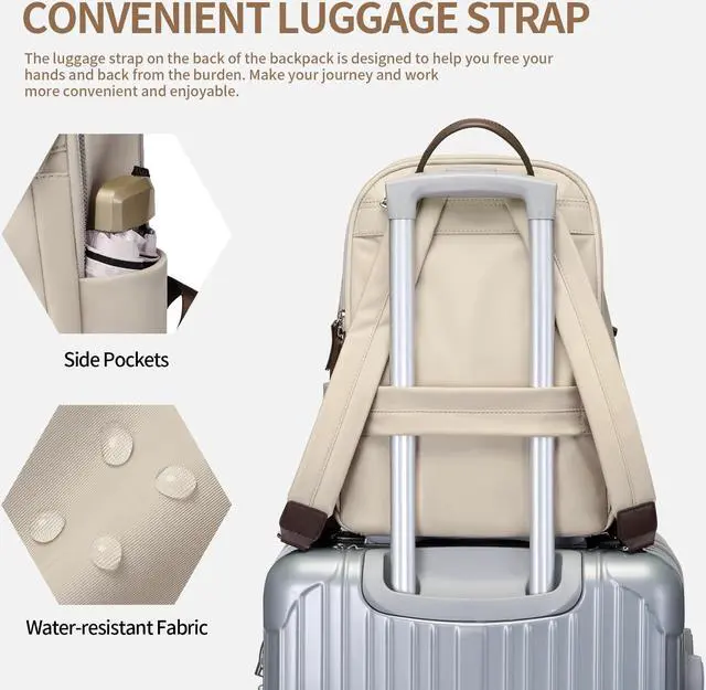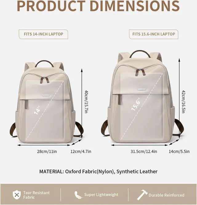 GOLF SUPAGS Womens Laptop Backpack with Separate Laptop Compartment Water Resistant Computer Backpacks Fits 15.6 Inch Notebook Travel Work College Bags (Apricot)