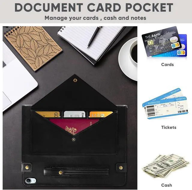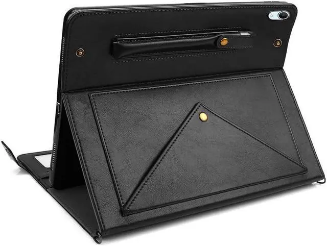The external pocket & internal multiple slots are designed to store business cards, ID, credit cards, bills, tickets or invoices at any time and any place. Also comes with a stylus holder pocket for your Apple Pencil.