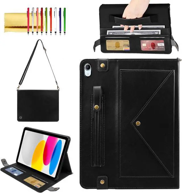 Elegant iPad 11" A16 Case / iPad 10th Generation Case for Women, Smart Folio Stand Case with Handle, Pen Pocket & Shoulder Strap