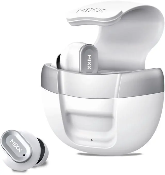 MIXX StreamBuds Solo 1 True Wireless Earbuds Bluetooth 5.1 with 18 Hour Total Playtime, Quick Charge, Touch Controls, Built-in Mic, Custom Fit Ear Cushions, Voice Assistant Compatible - White.