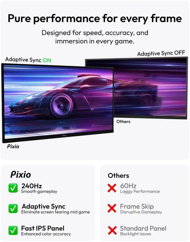 Pixio PX279 Wave 27 inch 240Hz Refresh Rate FHD 1080p Resolution Fast IPS Panel 1ms GTG Resonse Time Gaming Monitor with Adaptive Sync