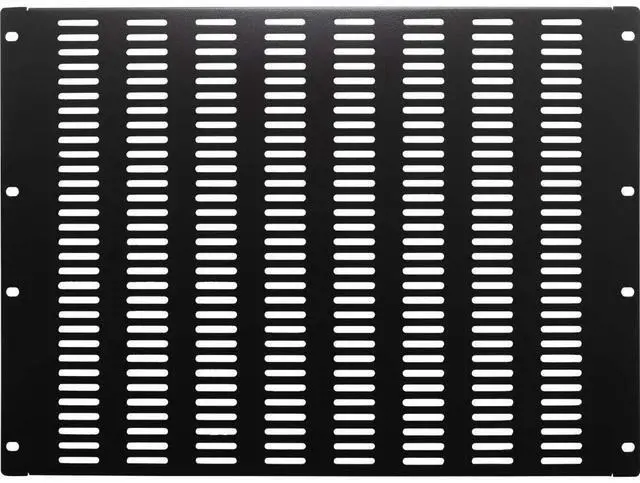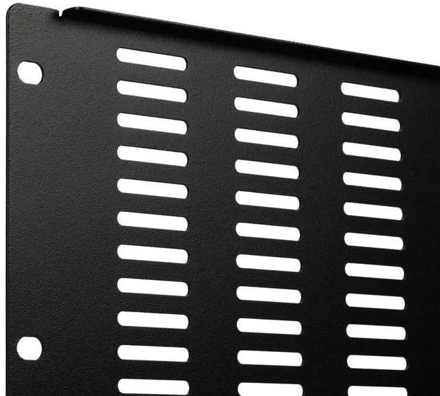 The filler panel can be easily and quickly installed horizontally on most 19-inch server racks, enclosures and cabinets with the included hardware. The vented panel conceals unused rack spaces and visible cables for a cleaner and more organized appearance. Constructed of heavy-duty cold rolled steel in a black powder coated finish for lasting durability. Available in a variety of sizes.
