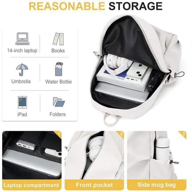 Updated structureThis college student laptop backpack can accommodate most of the equipment books and laptops,also can accommodate a 15.6 inch (about 36.3 cm) laptop backpack.There are two water bottle pockets on both sides for drinks. It can be placed on the luggage and has an anti-theft zipper pocket for type valuables such as wallets and ID cards.