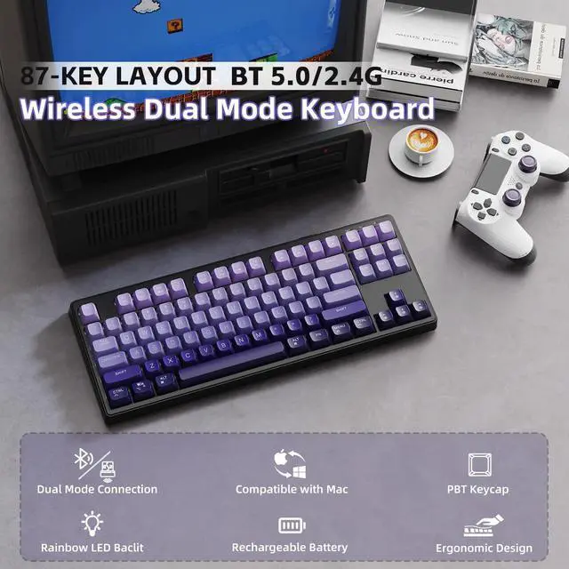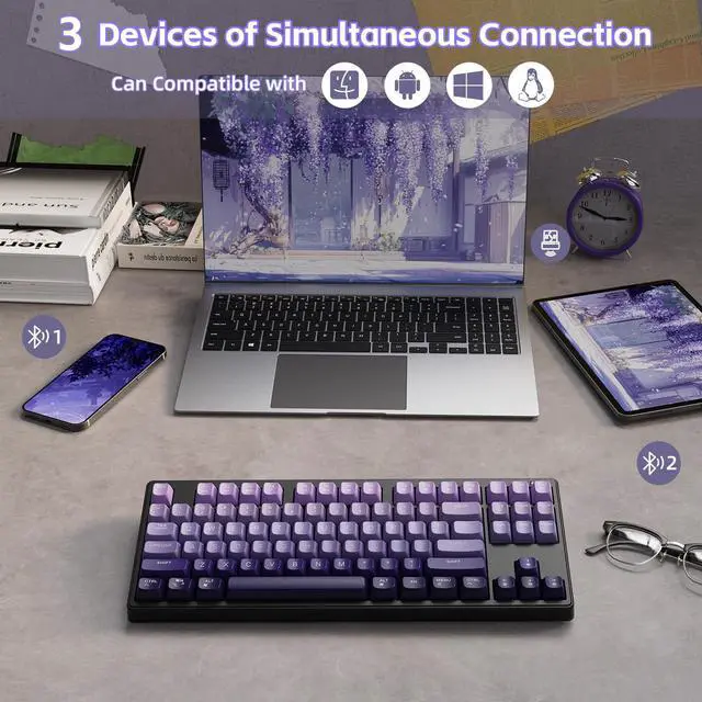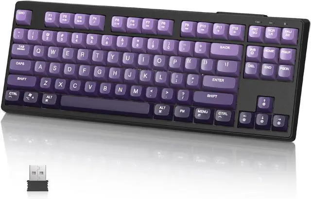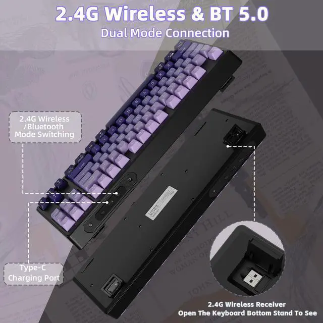 Dual-mode Connectivity & Rechargeable 4000mAH Battery] Effortlessly pair via Bluetooth 5.0 (supports 3 devices) or 2.4G wireless with a long press of Esc+Q. (USB-C cable only for charging.)Within the 4000mAh battery,the wireless keyboard is ready for 80+ hours of quiet productivity or gaming.