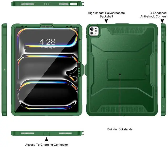 Rugged Armor Shockproof Protection Multi-layered hard PC back and flexible TPU bumper provide your iPad Air / Pro 13-Inch 2025 2024 & iPad Pro 12.9 2022 2021 2020 strong protection against drops,bumps, and impacts, also easy to install