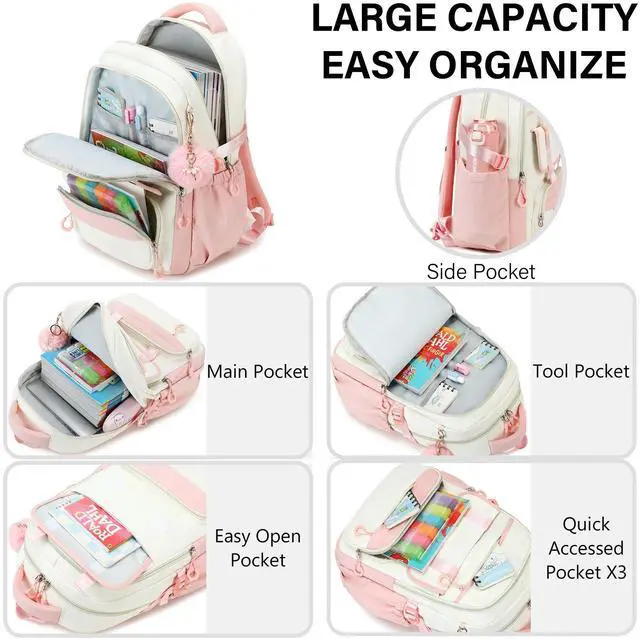Durable Material: This girls student backpack is made of waterproof, abrasion resistant, tear resistant, lightweight high density nylon fabric, all seams are reinforced, this student to ensure the long lasting durability of the student backpack. This student school bag uses a high quality zip which is very smooth to use and solves the problem of zips during use.This backpack for girls shoulder strap buckles are non-slip to ensure comfort during use