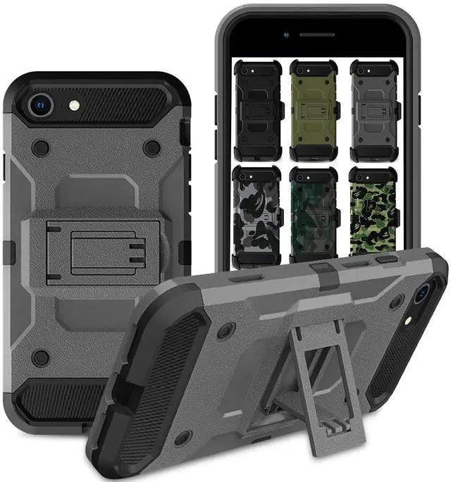 DuraSafe Cases for iPhone 7 iPhone 8 4.7" [ 2016/2017 ] A1660 A1778 A1779 A1863 A1905 A1906 Military Printed Rugged Heavy Duty Case with Kickstand - Dark Gray (Without Holster)