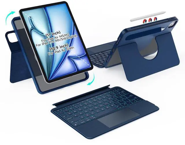 accrosoo for iPad Air 11 inch (M3 2025/M2) Rotatable Detachable Magnetic Keyboard Case with Trackpad & Backlits for 11" iPad Pro (4th/3rd/2nd/1st Gen) and 10.9" iPad Air 5th/4th, Blue