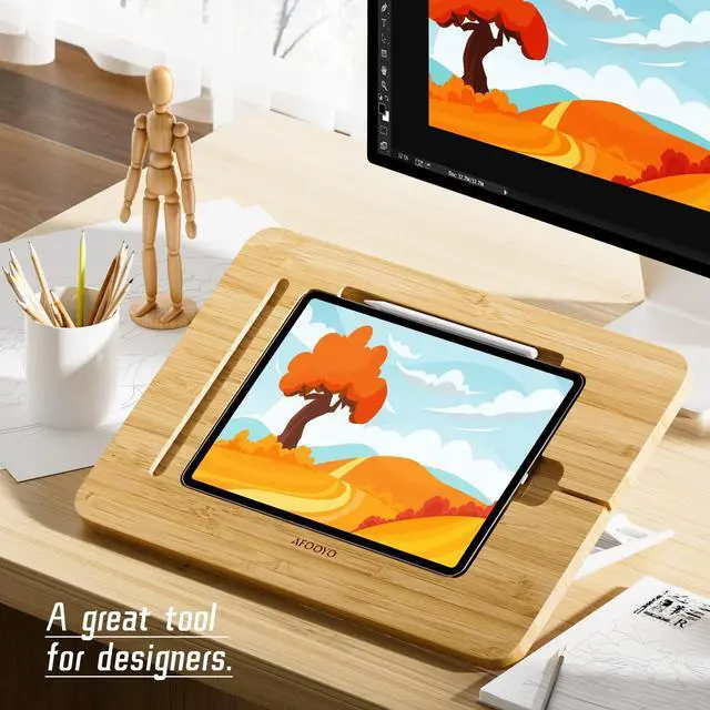 AFOOYO Wooden Tablet Drawing Stand Tablet Stand - Portable & Adjustable 5 Angles for Laptop, Laptop Stand Riser,Book Reading Stand,Compatible with 12.9 inch iPad Pro (3rd - 6th Gen)