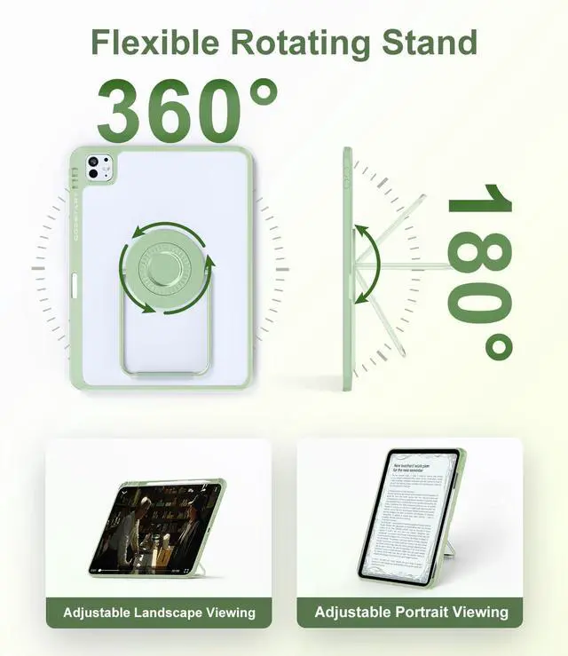 Rotating Case for iPad Air 13 Inch (M3/M2, 2025/2024), iPad Pro 12.9 Inch (6th/5th/4th/3rd Gen) with Pencil Holder, 360 Degree Rotating Stand for Portrait/Landscape Modes, Case with Stand, Green