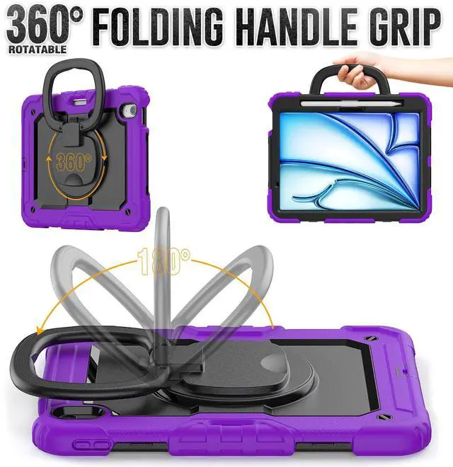 ZSLVPN for iPad Air 11 Inch Case M3/ M2 (2025/2024), Heavy Duty Shockproof iPad 11 Air Case (6th Generation) with Rotating Handle & Stand- Shoulder Strap- Screen Protector- Pencil Holder, Purple
