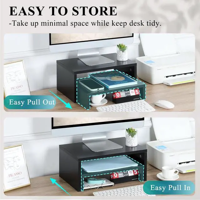 Flexible Pull out DesignSpecially designed for multi-tool office, you can put your ipad and mobile phone on the second layer, so that you will never miss a message, and it is convenient to operate multiple devices at the same time.