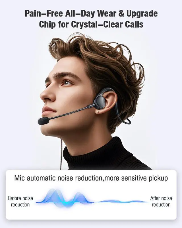 Open Ear Comfort & Situational AwarenessUltra-lightweight 0.88oz wired headset feature a non-invasive open ear headphones,it will not cause pressure or pain in your ear canals and experience surroundings ambient awareness, ideal for office calls, online classes, and multitasking environments requiring ambient sound awareness. no ear fatigue, just pure comfortable.