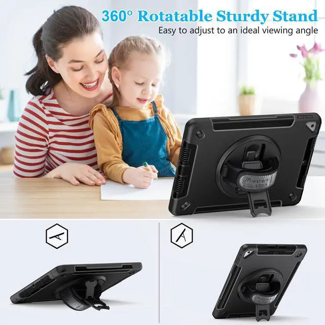 MULTI-ANGLE KICKSTAND AND 360°TURNTABLE: Case for ipad 9th/8th/7th Generation built-in bracket and turntable. Pick a perfect angle what you want. For watching videos, confere