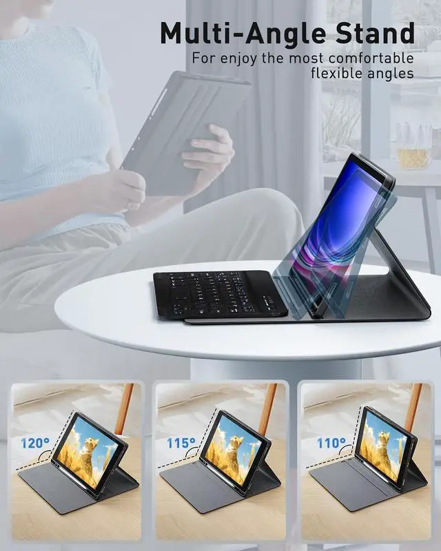 Adjustable viewing angles and support for pencilCase for iPad Mini 5th Generation supports 3 viewing angles and has anti-slip slots. Move the tablet forward or backward along the case to choose a suitable angle to use the tablet for writing, viewing,