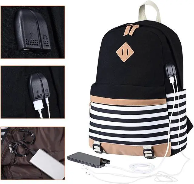 USB DesignRucksack bag is equipped with USB charging cable, which is convenient for you to charge your electronic devices, and earphone jack allows you to easily enjoy music when you are out, to provide convenience for your travel. Note: don't include mobile power and phone charging cable