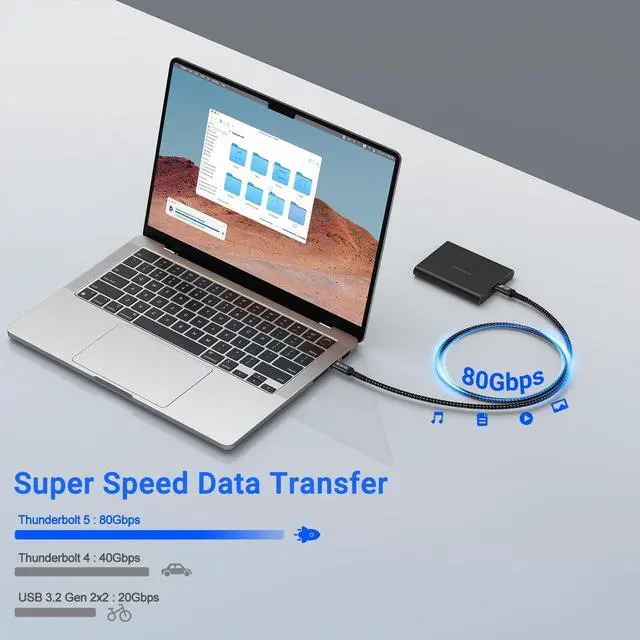 Widely CompatibilityThis usb 4 cable for thunderbolt 5 cable compatibility with thunderbolt 5 /4 devices and hosts. It is also backward compatibl