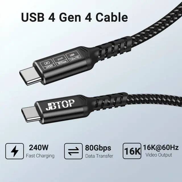 JBTOP USB Data Cable(3.3FT, 2packs) 80Gbps Data Transfer, Bandwidth for 16K/Dual 8K, 240W, Braided USB C Video Cable Compatible Thunderbolt 4/5, SSD, MacBook M4 Pro,Dock,eGPU/USB 4 Monitor