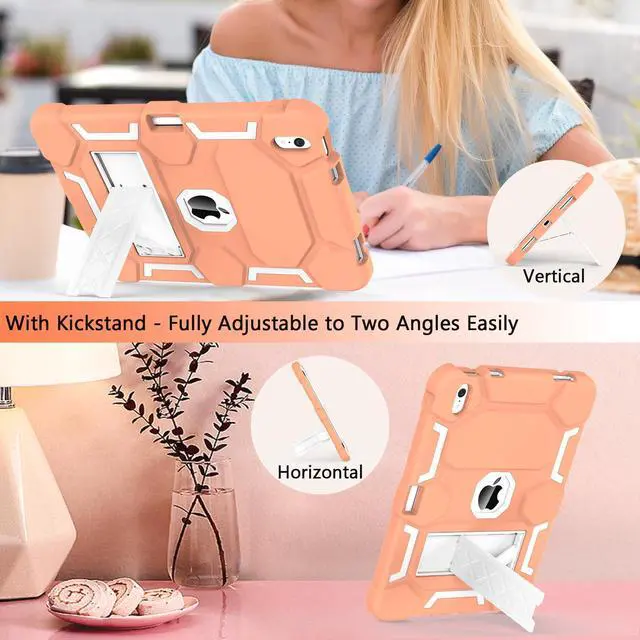 CCMAO Case for iPad (A16) 11th/10th Generation(2025/2022), iPad 10th Case with Kickstand & Pencil Holder, Heavy Duty Shockproof Hybrid Three Layer Protective Cover for Girls Women, Orange+White