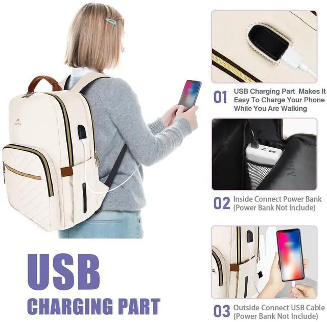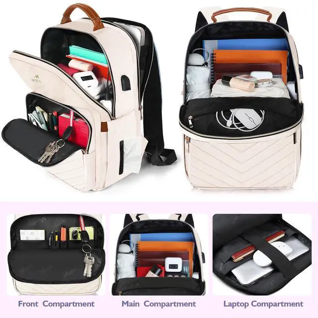 Matein Beige Travel Laptop Backpack for Women