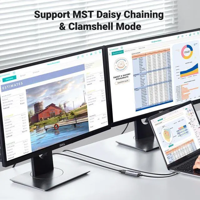 The UGREEN USB C to Displayport adapter connects a phone or computer with a USB Type-C or Thunderbolt 4/3 port to a monitor with DisplayPort and there is no need for a driver, or software. This USBC to DP converter supports up to 8K@60Hz resolution (backward supports 4K@240Hz, 2K@240Hz), offering you a realistic 3D experience. UGREEN Mini DisplayPort to DisplayPort 1.4 Cable connects laptops with Mini DP or Thunderbolt 2/1 to external DP devices. So that you can enjoy large-screen image and video on your monitors, televisions, or projector screens. Through this you can handle different applications at the same time to boost your efficiency.