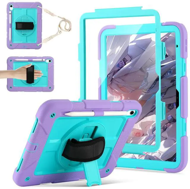 DUEEFA for iPad (A16) 11th Generation case11'' (2025) /10th Generation case 10.9 '' (2022), 360°Rotatable Stand with [Screen Protector&Pencil Holder&Shoulder Strap] Shockproof Case (Light Purple+Green)