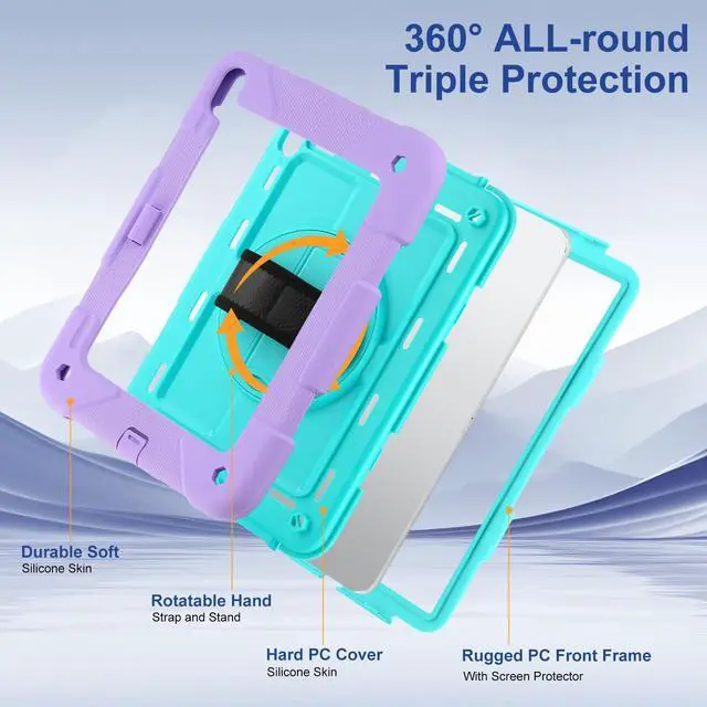 All-Round ProtectioniPad 10th Generation Case,Crafted from durable Silicone Outer Shell and Hard PC Back Cover, provides full-body protection and features a built-in screen protector to protect your iPad from accidental drops,bumps and shocks.Silicone stopper at the charging port keeps dust into.
