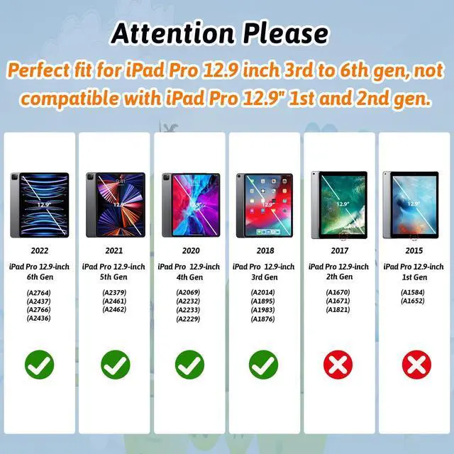 The case for iPad Pro 12.9 inch fits iPad Pro (12.9-inch, 6th/5th/4th/3rd generation,Released 2022/2021/2020/2018)perfectly.Note:it is not for iPad Pro 12.9-inch (2nd/1st generation,Released 2017/2015).