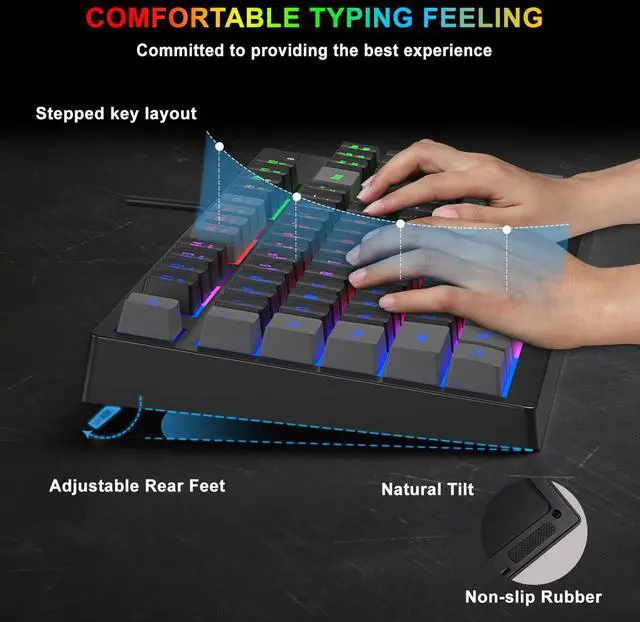 Ergonomic & Durable Keyboard: Quiet and soft typing, scientific stepped keycap designed, bringing maximum comfort and effectively reducing hand fatig
