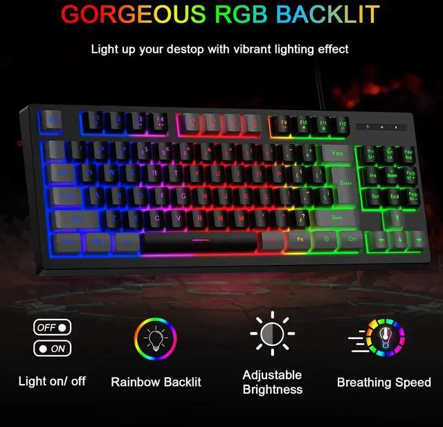 BlueFinger RGB 87 Keys Gaming Keyboard and Backlit Mouse Combo, USB Wired Rainbow Keyboard, Gaming Keyboard Set for Laptop PC Computer Game and Work(Gray & Black)